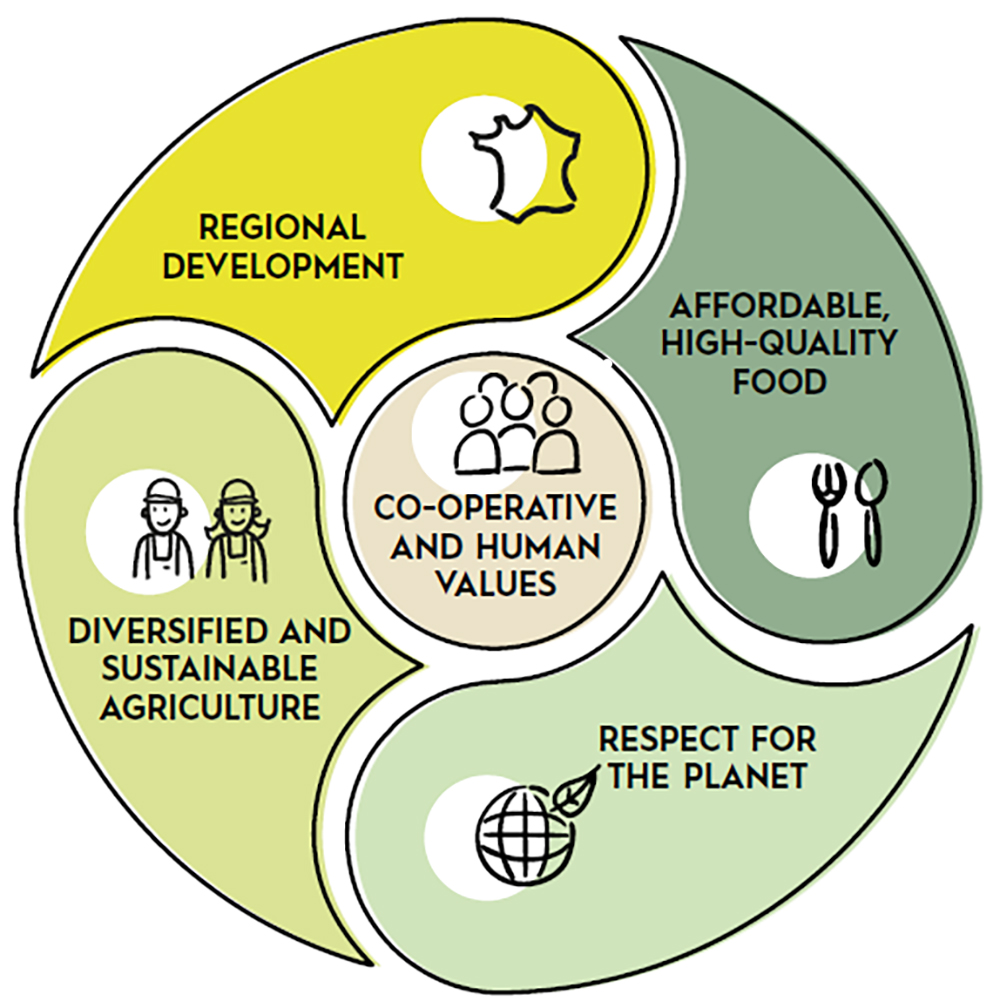 All our strategic choices are guided by the notion of value creation. Shared value is the foundation of our co-op’s identity: shared with our co-op members, but also with our employees, consumers and all of the stakeholders in the regions where we operate. We are united around shared values which uphold a virtuous model that is respectful of the land and people. This is the true meaning of our tagline, “The land unites us”.