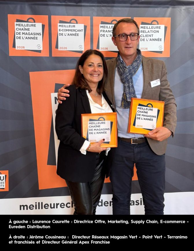 Cette année, Magasin Vert et Point Vert montent pour la première fois sur la plus haute marche du podium et décrochent le trophée de Meilleure Chaîne de Magasins de l’Année 2026 !