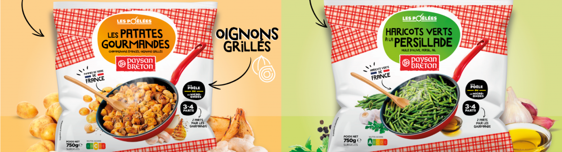 Notre marque Paysan Breton Les surgelés lance en ce mois de septembre 2022 deux nouvelles poêlées inédites au rayon surgelés : les Patates gourmandes et les Haricots verts à la persillade. Deux recettes simples, pratiques et gourmandes pour les repas du quotidien.