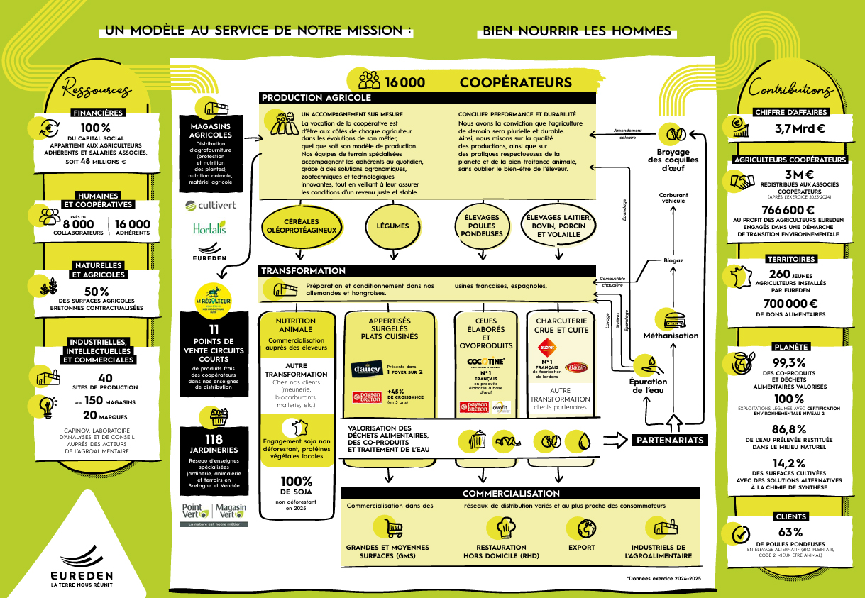 Eureden est né de la volonté de deux coopératives de s’engager ensemble afin de développer un modèle agricole et alimentaire durable en réponse aux enjeux mondiaux, qu’ils soient environnementaux, économiques ou sociaux.